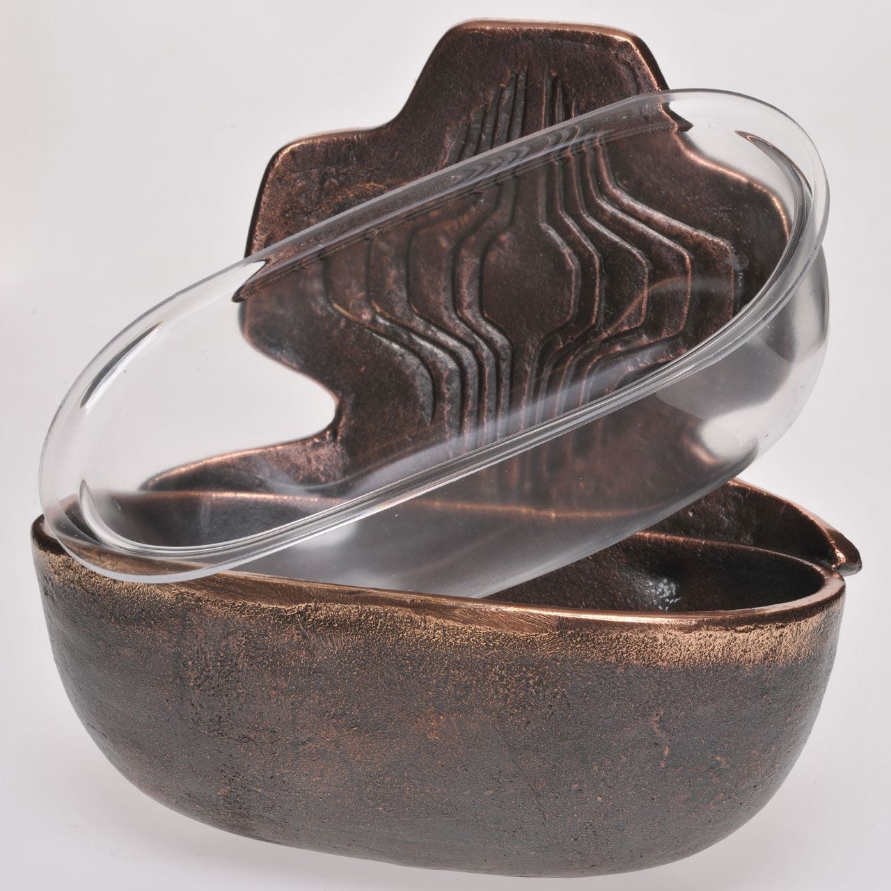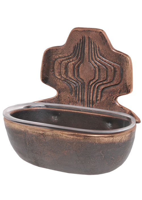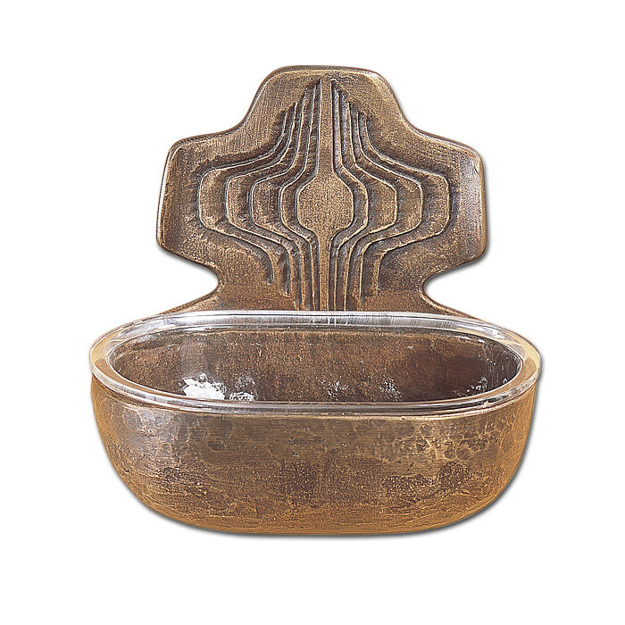 Das Weihwasser-Wandbecken ist aus Bronze gegossen und als Exklusivmodell nur bei uns erhältlich. Praktisch ist der abnehmbare Plexiglas-Einsatz, der ein leichtes Säubern ermöglicht.