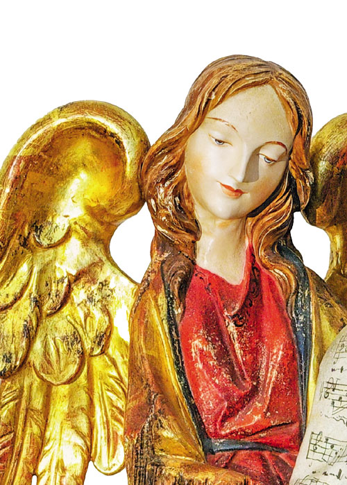 Eine außergewöhnliche Besonderheit stellt dieser schöne Engel dar. Komplett aus einem alten Baumstamm geschnitzt, wurden Teile des Stamms unbearbeitet belassen – und bilden so einen interessanten Kontrast zu den fein ausgearbeiteten Details dieser Figur. Ein Unikat aus der Hand des weithin bekannten Künstlers Alfons Runggaldier aus dem Grödner Tal in Südtirol.