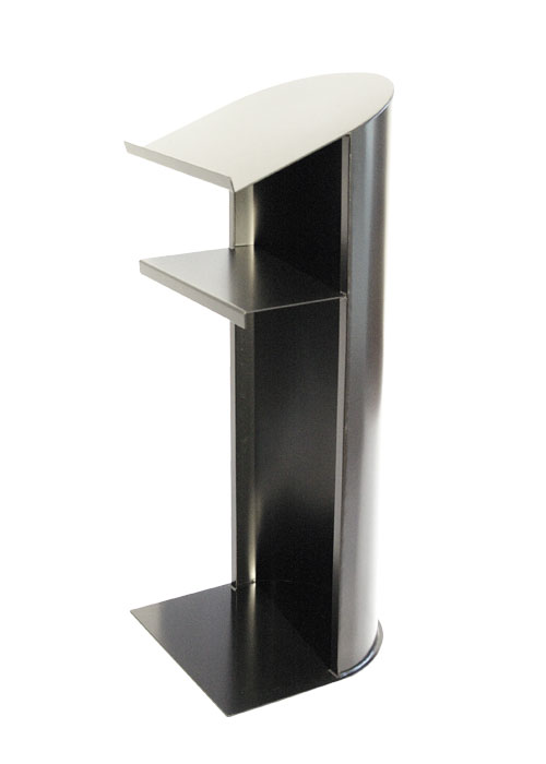 Von Hand geschmiedeter Ambo aus schwarzem Eisen, pulverbeschichtet. Der stabil stehende Ambo ist halbrund gearbeitet und zeigt vorne eine senkrecht duchbrochene Fläche. Der Ambo punktet mit seiner zusätzlcihen Ablagefläche in Höhe von 105 cm.