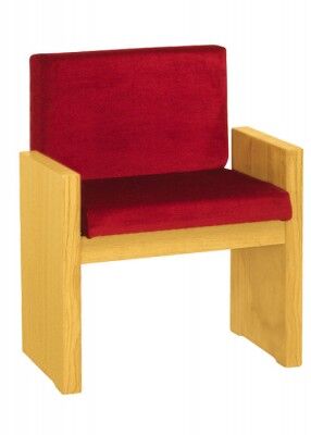Eine stabil gearbeitete Mittelsedilie, die Sie aus Buche oder Eiche, sowohl in naturhell als auch in dunkel gebeizt, bestellen können! Die Mittelsedilie zeigt ein auffallend schlichtes Design, die mit klarer Linienführung punktet. Die Seitenflanken sind geschlossen, was dem Sedilienstuhl diese besondere Stabilität verleiht. Der Sitz besteht aus einem Schaumstoffpolster, der mit rotem Velours bezogen ist. Die Maße des Stuhles betragen 60 x 40 cm. Seine Gesamthöhe beläuft sich auf 90 cm. Passend zu dieser Mittelsedilie können Sie die Seitensedilie bestellen.
