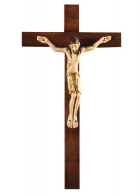 Dieses wunderschöne Wandkreuz wurde in Anlehnung an das Original aus dem 12. Jh, das im Museum Innsbruck ausgestellt ist, gefertigt. Es ist holzgeschnitzt und antik gefasst, der Lendenschurz ist blattvergoldet. Die Gesamthöhe des Wandkreuzes beträgt 40 cm, die Corpusgröße 23 cm.
