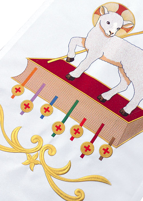 Ambotuch aus 100% Kunstfaserstoff mit Lamm-Gottes-Applikation Größe:  160 x 55 cm... mehr