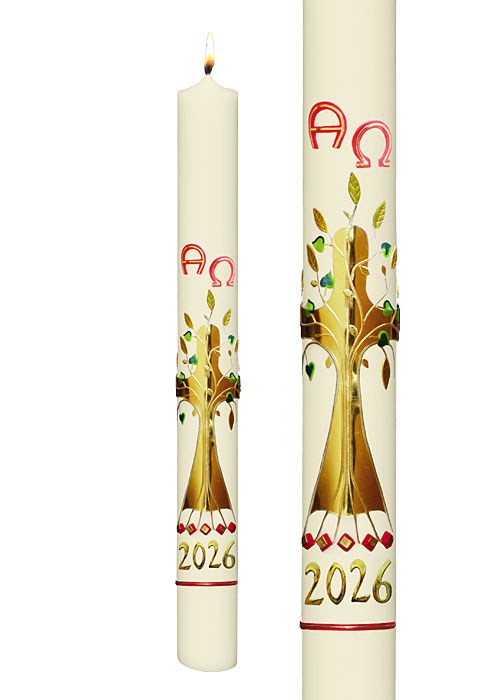 Bestellen können Sie diese Osterkerze in den Größen 60 x 8 cm, 80 x 8 cm und 100 x 10 cm.